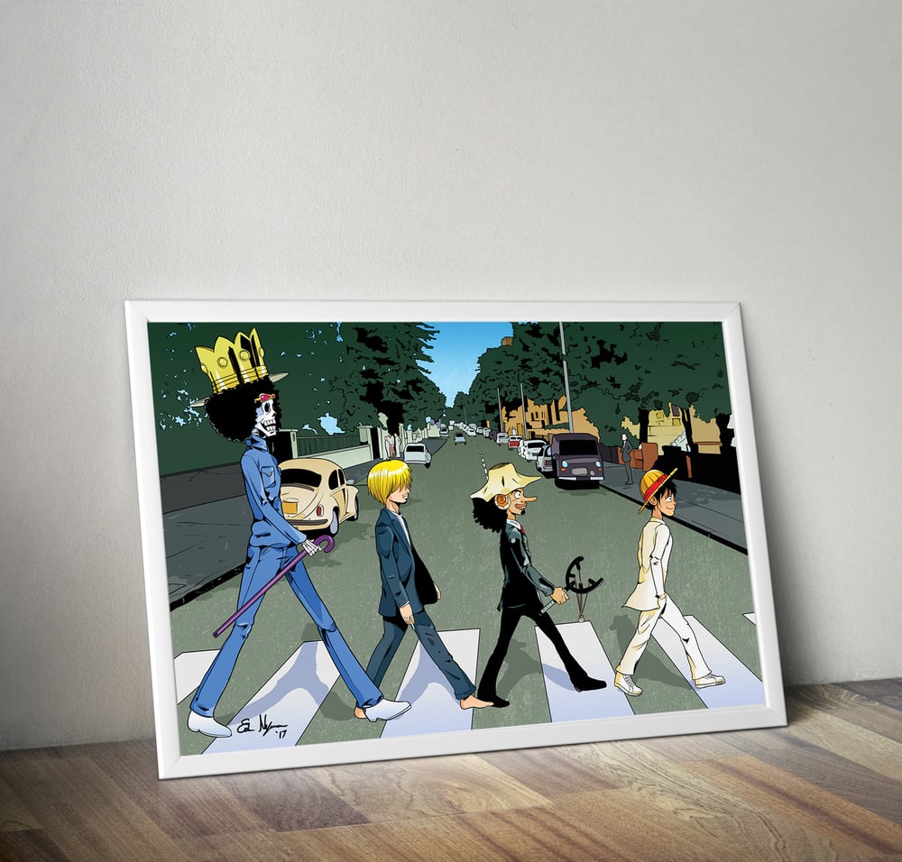 High quality signed 11 x 17 print of Beatles and Straw-hats mashup. Each print comes with a protective backing board.