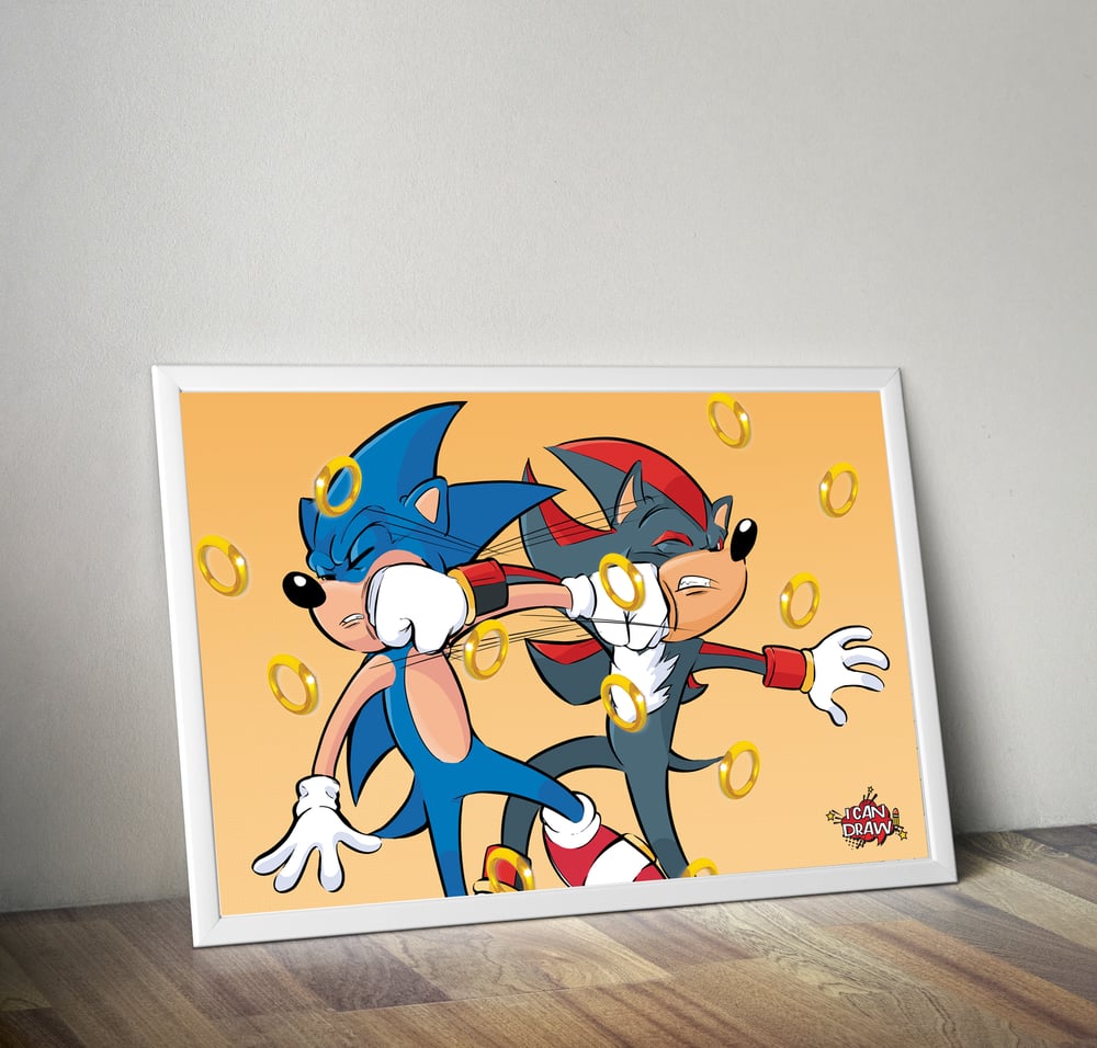 High quality signed 11 x 17 print of Sonic Vs Shadow. Each print comes with a protective backing board.